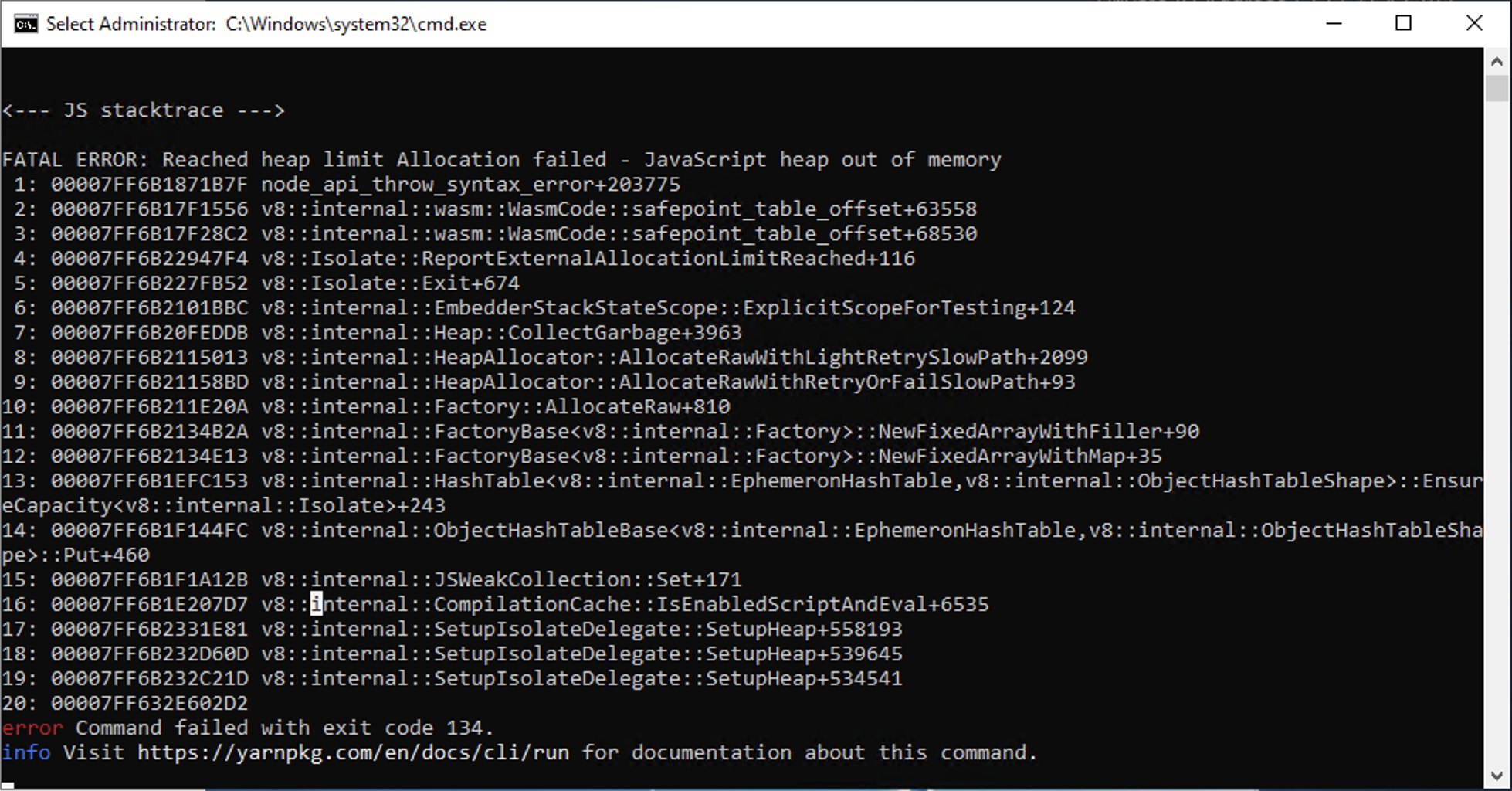 FATAL ERROR: Reached heap limit Allocation failed - JavaScript heap out of memory